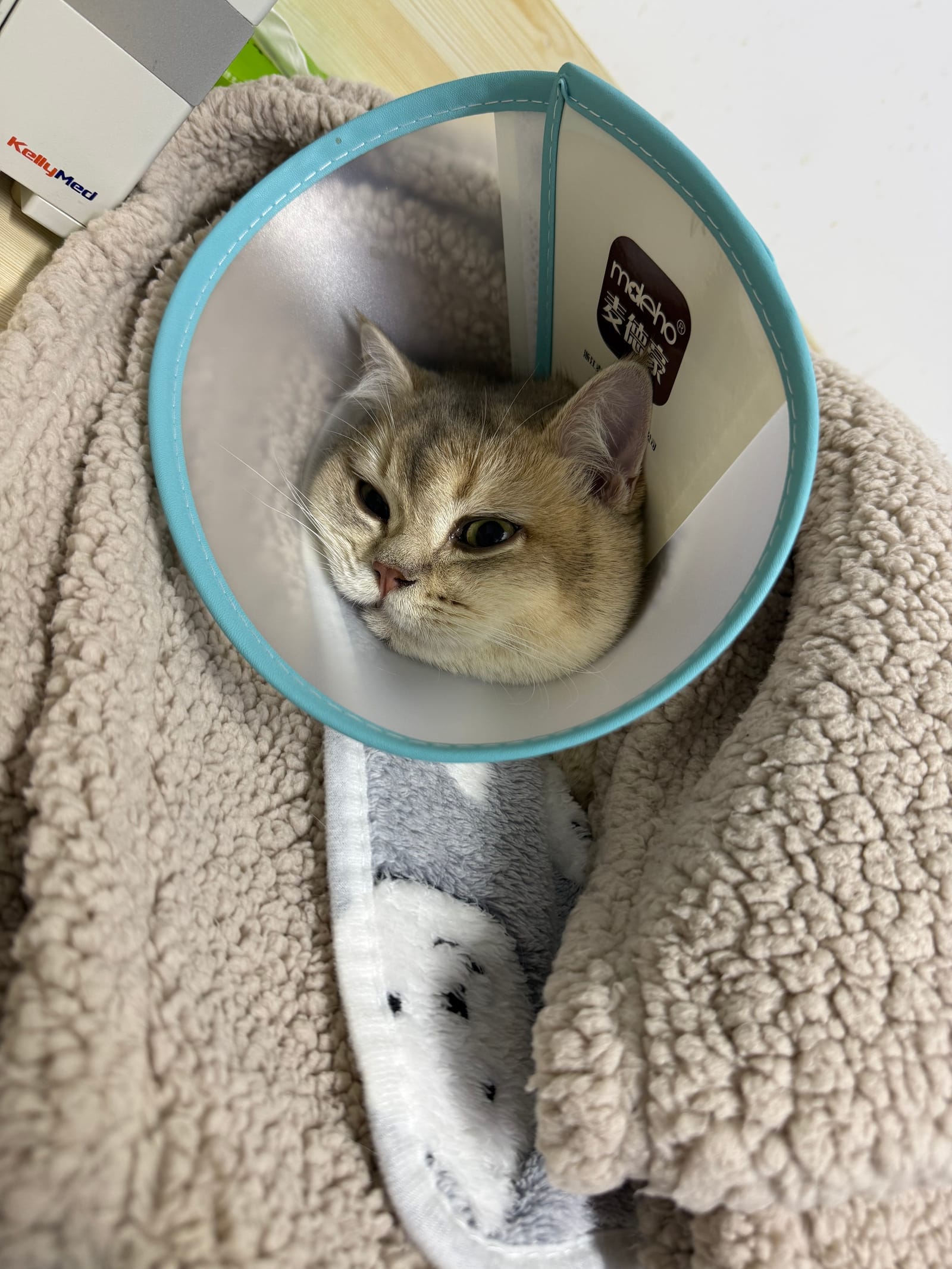 最近两天发现旺财踩奶发情了,怕他哪天突然在家里乱尿,于是今天带他去噶蛋。去的是哈尔滨朋友推荐的店家宠安医生和护士都很好,很专业,护理的也很到位。